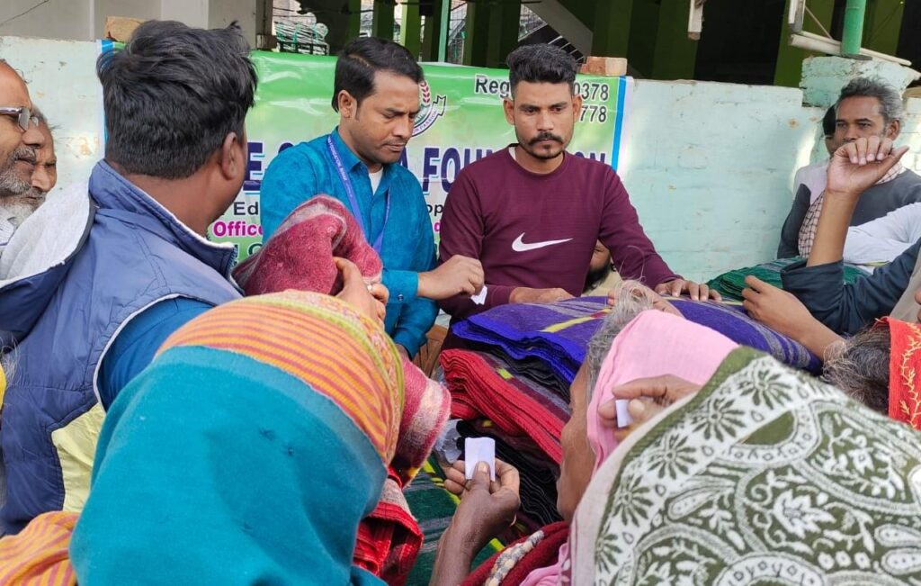 रविवार को संस्था के सदस्यों ने वॉर्ड नम्बर 27 के मायागंज इलाके में शिविर लगाकर जरूरतमंदों के बीच कंबल वितरण किया।